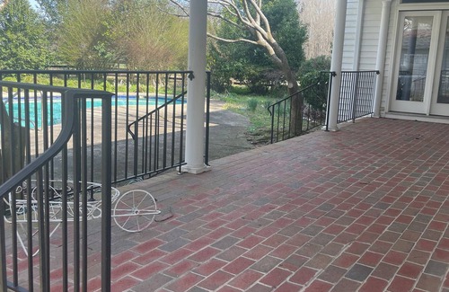 Gorgeous sunsets on a 25 acre horse farm in a peaceful country setting. This 96 year old home was once owned by the DuPont Family (yes that DuPont family). In fact they even built race cars in the 4 car garage. House is large and offers many amenities. The grounds offer a park like setting with grand old trees and original brick silos. There are 12 stables and 7 paddocks for rent at an additional charge, so if you are in town for a horse show or just passing through with your equine pal, this is the place for you!