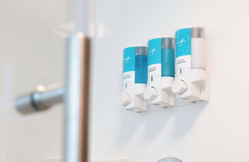 An indoor pool, an outdoor pool, and a hot tub are on site. Other recreational amenities include a fitness center.