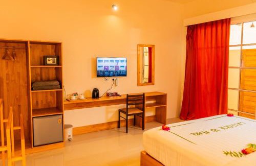 Pearl Dhigurah in Dhigurah provides accommodations with free bikes and a garden. Among the facilities at this property are room service and daily room service, along with free Wifi throughout the property. The accommodation features an ATM, private check-in and check-out, and currency exchange for guests. The guest house will provide guests with air-conditioned units with a wardrobe, a kettle, a minibar, a safety deposit box, a flat-screen TV, and a private bathroom with a shower. At the guest house, all units have bed linen and towels. À la carte and continental breakfast options with local specialities, pancakes, and fruit are available. For visitors looking to embark on day trips to nearby landmarks, the guest house provides a selection of packed lunches. Dhigurah North West Beach is a 2-minute walk from Pearl Dhigurah.