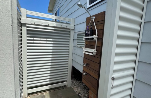 Outdoor Shower – Hot and cold water to rinse off after a day at the beach