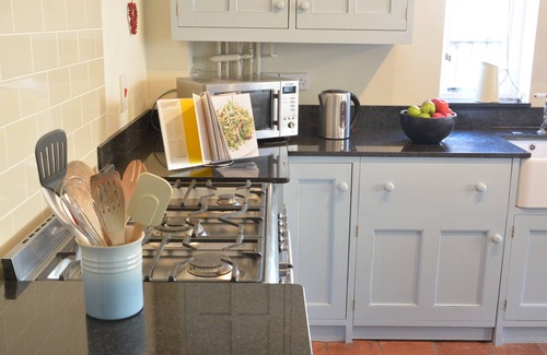 Amenities: Gas central heating with woodburning stove. Range cooker with gas oven, grill and hob, microwave, fridge, freezer, washing machine, dishwasher. TV with FreeSat, WiFi. Bed linen and towels inc. in rent. Travel cot available on request. Off-road parking for 1 car. Patio gardens to front and rear, patio furniture, barbecue. One well-behaved dog welcome downstairs. Note: If you wish to bring a dog please inform us at time of booking. Sorry, no smoking. Shop 0.4 miles, pub 0.2 miles. Note: If you wish a travel cot and highchair to be available please request at time of booking. Note: Sorry, no unaccompanied teenagers.