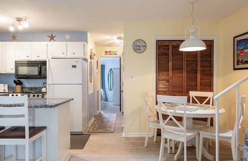 You will fall in love with the many amenities this condo has to offer. The living area features a queen sleeper sofa and cathedral ceilings that create an inviting atmosphere, while the balcony overlooks the indoor/outdoor pool, providing a beautiful setting for relaxation. With a fully equipped kitchen, dining area, and a master bedroom suited for ultimate comfort, you will feel right at home. The property boasts access to a 2,000 sq. ft. oceanfront clubhouse available for rent through the Pebble Beach Home Owners Association, which is perfect for hosting receptions and family gatherings. Additional features include high-speed wireless internet, a brand-new fitness room, and landscaped courtyards for picnics and outdoor fun.