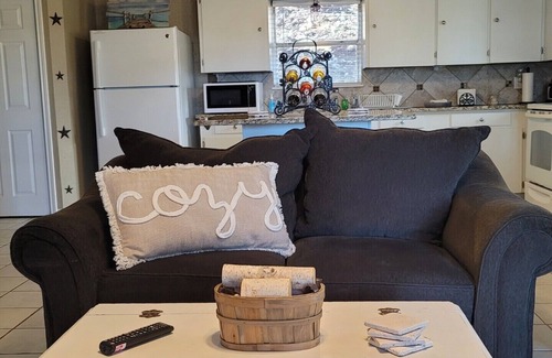 House is furnished with full size refrigerator, stove, washer, dryer, and microwave and everything else to make your stay as comfortable as possible. We provide 2 Smart TV's and a wii gaming system as well as free wifi, fresh towels and linens, gourmet coffee beans, assorted sweeteners and creamer. We also provide a high chair, pack-n-play, ironing board, iron and hairdryer. Shampoo, body wash, laundry detergent and washer and dryer provided. We also provide a king size trundle bed that is available in the upstairs living room.
