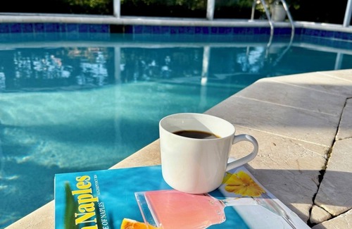 Naples Bay access, elegant house on prestigious Pelican Ave. This peaceful oasis offers private tropical backyard with pool, hot tub, and 36' private dock with boat lift. Master suite offers a retreat executive office overlooking the grand palms. Five minutes from Naples Bay Resort and around the corner from 5th Ave restaurants and shops. Kayaks, bikes, canoe and all the furnishings. Egyptian cotton linens, smart tvs and excellent wifi allows easy home office living. Call Gina 316-841-9242