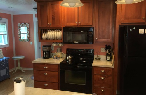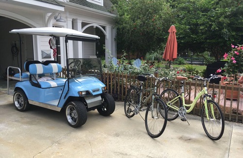 Pelican's Perch is a detached, fully furnished apartment located at 905 Seagrove Street in Historic St. Marys, GA. It is located 1/2 mile from the city waterfront, restaurants, shops and Cumberland Island ferry. The cottage style apartment has a fully applianced kitchen, breakfast nook, a children's trundle bed, a separate bedroom with a queen bed, one bath, washer and dryer, and a private patio with gas grill. The cottage rental includes the use of beach chairs, beach towels, three bikes, and a golf cart. Golf carts are legal in downtown St. Marys and any area with a 35 mph or less speed limit. The cottage has private off street parking in a quit mid-town neighborhood. Other amenities include WIFI, cable TV, DVD player with movies, and central air conditioning and an abundance of bedroom storage.