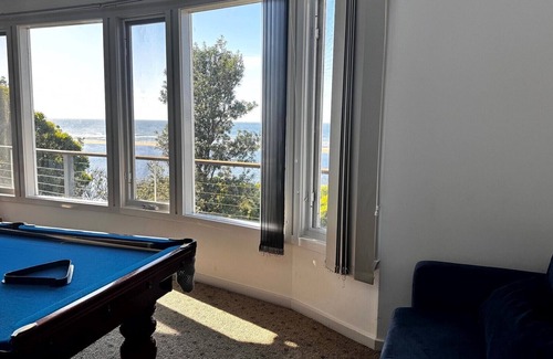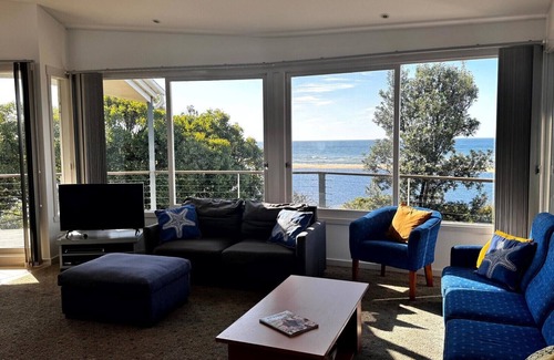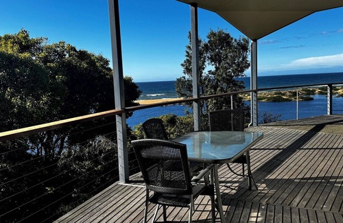 Pelican's Perch is a spacious holiday home at Lake Tyers Beach offering breathtaking water views. The architecturally designed house features a large deck, four bedrooms, and ample living space. It includes a fully equipped kitchen, a games room, and family-friendly amenities. Nearby attractions include the Waterwheel Tavern and a boat launching ramp. The property accommodates up to 16 people, with a strict no-smoking and no-pets policy