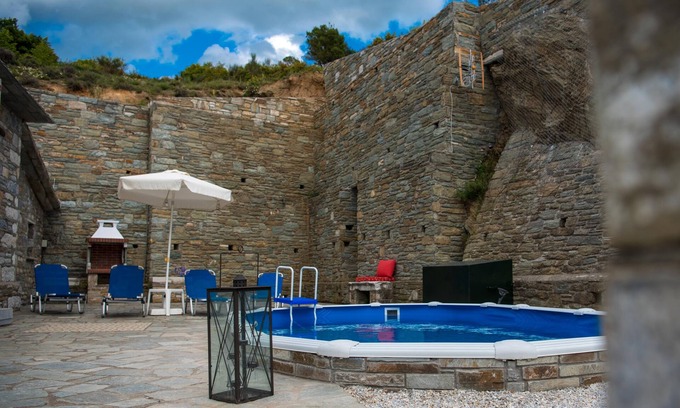 The stone house "VENUS" is new, 75 sq.m. with private pool heated from April to October up to 28 degrees Celsius, ideal for 2 adults or a family of four, with kitchen, living room, fireplace, bedroom, bathroom with hydromassage column and large paved courtyard with stunning views. For larger families or groups you can combine the PELIONGODDESS "DIANA" STUDIO WITH A PRIVATE HEATED POOL located in the same place.
