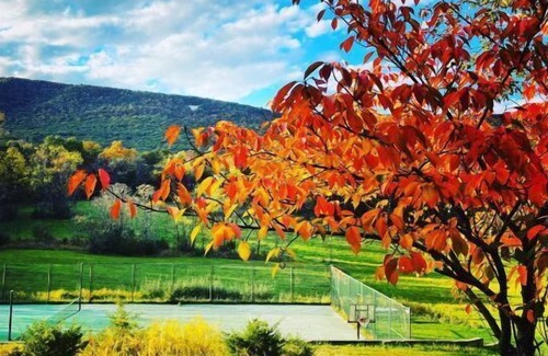 The retreat features spacious common areas, including elegantly designed dining, living, and sitting rooms adorned with a beautiful mix of Japanese and Virginia decor, along with art created by the family. A chef's dream, the commercial kitchen is perfect for catering options, allowing you to savor exquisite Japanese cuisine on your special day. Guests can unwind in two large Japanese cedar tubs fed by pristine mountain water and enjoy a range of amenities, such as hiking trails, a tennis court, and a tranquil pond ideal for fishing. With a family-run atmosphere, you will always find a friendly face to assist you, ensuring a personal touch to your wedding experience.
