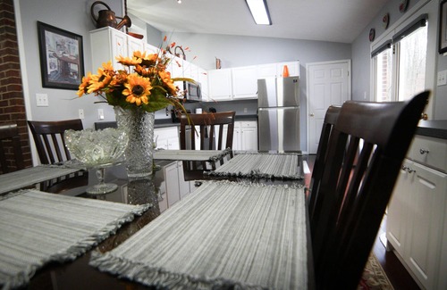 Our Home is located on 8 secluded acres in Oldham Co KY. Just 3 miles from interstate 71 for easy access to Louisville or Cincinnati. also 5 miles to Lagrange KY for shopping & restaurants. Very Private & peaceful surrounded by woods & wildlife. Creek runs along the back side of property. Perfect for reading & relaxing by day & listening to frogs, crickets & owls at night! We have several big owls, deer, squirrels, red foxes, a red tail hawk & often we see a eagle fly over. Our place is perfect for couples, families, reunions & retreats.