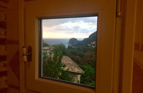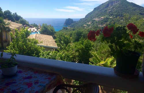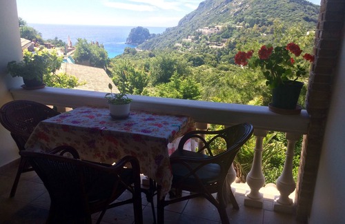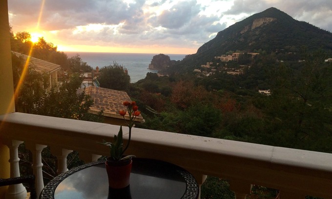 Located on the secluded hill overlooking the Ermones bay, the complex offers a stunning panoramic view of the sea, mountains and a valley. The location is quiet and beautiful. It is situated on the west side of the island 100 m above the level of the sea. The closest beach is less than 1 km. There you can find some Greek taverns where you can enjoy your food with the glass of wine breathing in the fresh sea air.