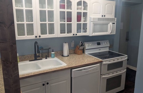 Comfort awaits as this unit is packed with amenities like a full kitchen, bathroom, king-sized bed, walk-in closet, pull-out bed, and a lakeside deck to soak in the serene views. Not only does this apartment offer spectacular views, but a continental breakfast to enjoy as you gear up for wherever your day may take you. Want to skip breakfast? No worries! The Busy Bee Cafe is just steps away to get your caffeine fix first thing in the morning.