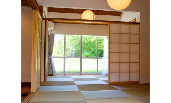 Tables and grills will be provided as appropriate depending on the number of people / An old private house located a minutes drive from Tsunoshima Ohashi Bridge it was renovated through a crowdfunding project and has become a guesthouse that beautifully combines modern and Japanese style