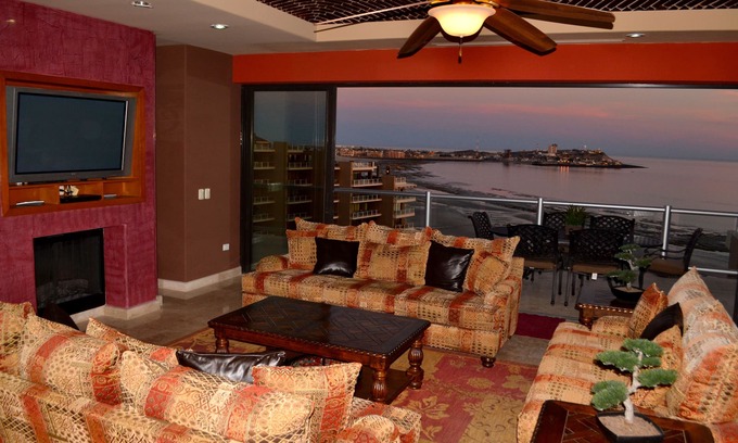 Welcome to the Penthouse - Luxury 5BDR /5 1/2BA Oceanfront Hacienda, an exquisite 8,800 square foot paradise that serves as an ideal wedding accommodation. Nestled atop the Cristal building at the prestigious Las Palomas Beach & Golf Resort, this unique penthouse offers a stunning backdrop for your special day against the breathtaking views of the Sea of Cortez. The vibrant colors and classic Mexican-style decor create a romantic atmosphere that will transport you and your guests into a world of luxury and celebration.