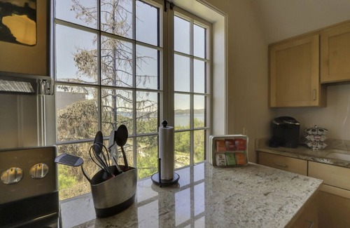 Penthouse Apartment on the top floor of the historic Blackwell Mansion with vaulted ceilings and great views of the Puget Sound. The bedroom features a king size bed. In the main living area, there is a queen size bed, dining table with seating for six, sofa with two accent chairs, TV with cable, a writing desk, full kitchen, bistro table, and a 1912 baby grand piano. NOTE: The apartment is at the top of three flights of stairs. The main level of the building is used for professional offices.