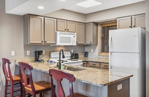 This gorgeous penthouse, connecting unit option is perfect for multiple families or a large group! It features a perfectly private king suite with lock-off connecting access to a spacious one-bedroom condo. The suite provides a private bathroom, and a cozy fireplace adjacent to a comfy king-size bed. The great room includes a living room with a fireplace, an ample dining area, and a full kitchen. The bedroom provides two queen-size beds, and the living room has a queen-size sofa bed and a full Murphy bed. Each has its own private, covered balcony with a view of Table Rock Lake. Guests can enjoy the convenience of an in-unit washer and dryer and access to all of Table Rock Resorts' family-friendly amenities.
