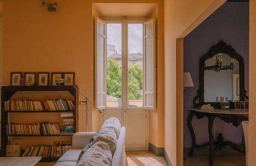 A very large penthouse, triple terrace: in Palazzo Romani Adami, an 18th century complex with medieval remains, completely renovated. Independent entrance, in an exciting, huge 18th century gallery, splendid light.