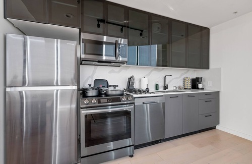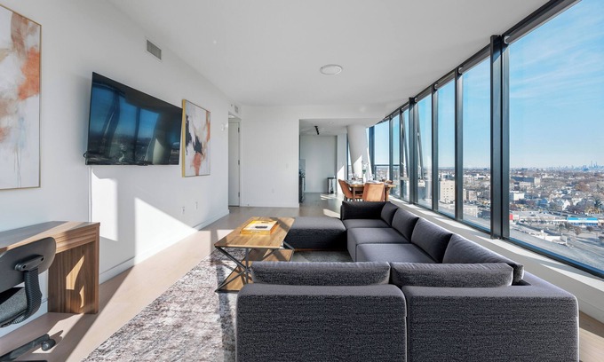 Step into the lap of luxury in this beautifully decorated 2 Bd 2 Ba apt in a premium building in the heart of East Orange. The sophisticated and chic interior boast plush furnishings, large windows, and elegant finishes throughout. The fully equipped kitchen and dining area is perfect for hosting intimate dinners. The beds have premium memory foam mattresses with 100% cotton sheets. Amenities include a gym, business center a lounge area, free WiFi & parking.