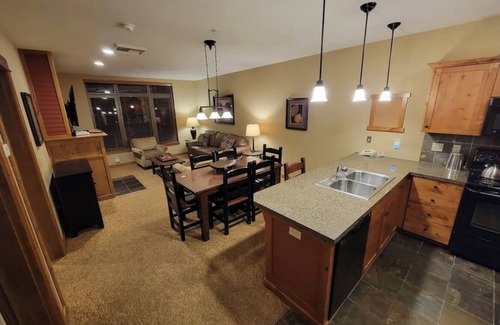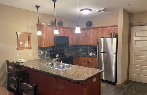 - Large Studio Condo with Full Kitchen Ski NOW Beautiful Balcony Views Hottub Fireplace