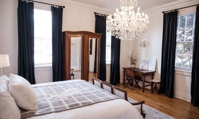 The Peony apartment has very high ceilings, comfortable living, space, gourmet kitchen, claw tub with shower head, beautiful king size bed with luxury bed linens, private entrance, walking distance to downtown Gastonia restaurant shopping close by.