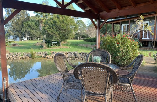 Traditional style 2 bedroom cottage with expansive rural views. Fully air conditioned, fireplace, private gazebo for guest exclusive use, all linen provided. We are only a 10 minute walk to the centre of Berry. Come for a real rural and farm experience, enjoy the outside fire pit and bbq, help us feed the cattle and horses and even come for a ride in the horse drawn cart. The best of a very quiet weekend on the farm with close access to the shops and cafes of Berry. This is great for the kids or for that romantic time away, or even the girls weekend away.