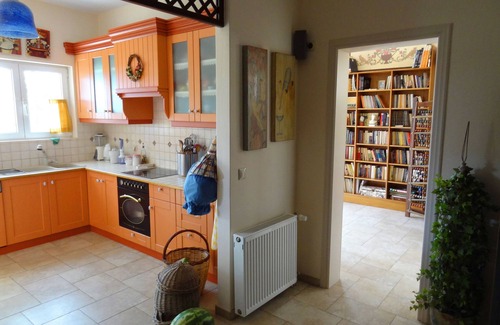 The villa it self, built on a slope, boasts a marvelous view from every one of its three tiers. The main outdoor area is complete with a large patio and dining area, swimming pool and stone barbecue, all surrounded by dense local vegetation ranging from grape vines to fig and pomegranate trees. All of course overlooked by the spacious verandas on every floor.
