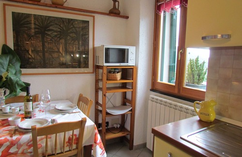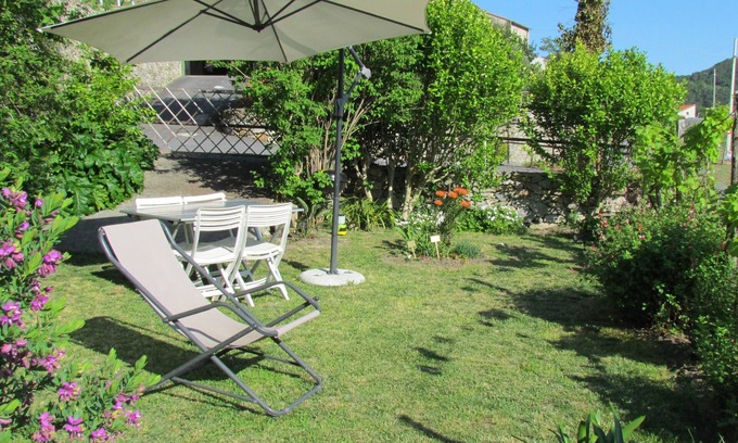 Grazioso ed accogliente appartamento a piano terra, soleggiato, ventilato e fresco d’estate, con soggiorno dotato di poltrone trasformabili in letti, libreria, TV, scrivania con postazione wi-fi; cucina abitabile con forno elettrico, microonde, lavastoviglie e attrezzature da cucina; camera da letto matrimoniale o singoli; bagno con doccia e lavatrice. Portico abitabile con tavolo e sedie per pranzare e cenare all'aperto; giardino con cancelletto per chi viene con cane o gatto. Vista panoramica sulla valle e su uno spicchio di mare.