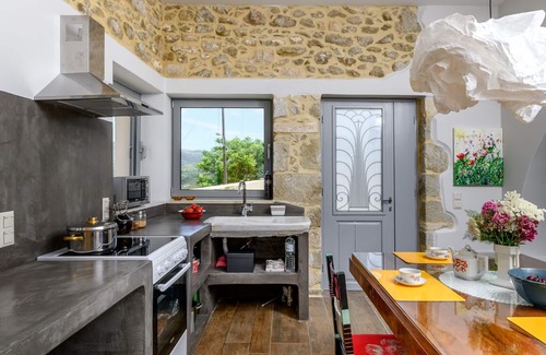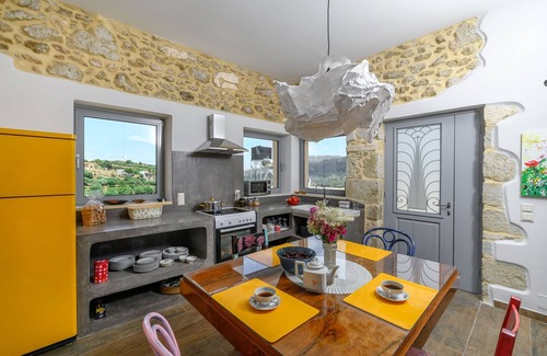 Pera Chorio - Daphne: Artist's stone house with countryside views has 2 Bedrooms , 2 Bathrooms, and max occupancy of 4 people. The minimum rental for this property is 1 nights, but this can change depending on the season you plan on staying. Previous guests have given good rated it, and VRBO labeled it a top-rated House because of the excellent services rendered by the owner or manager of this House, and has consistently provided great experiences for their guests. Most families or guests that use it recommend it to their friends and some of them are repeat guests. House has a friendly neighborhood, and the Sitia has interesting places to visit. If you want to learn more about the House in Sitia, such as places to visit and things to do nearby, you can check below to learn more.