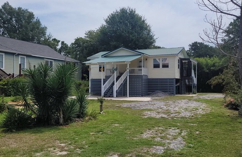 Perch pad is a newly renovated 2-bedroom 1-bath house located less than a half mile to the beaches. This centrally located home is in a quiet neighborhood. It is a raised home with a lift and plenty of space underneath for relaxing and barbequing. Or you can relax on the upper porch and enjoy the morning breezes. This home features 2 queen bedrooms and a sofa sleeper for extra guests. A fully stocked kitchen for cooking, everything is brand new and designed with your comfort in mind.