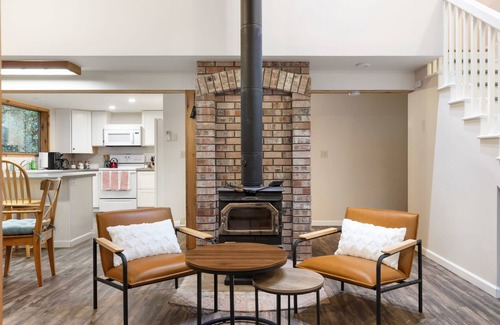 Fall asleep under the quiet night sky with the skylight blinds open in the upstairs bedroom and wake up to a flood of natural light and trees. Cozy up by the wood burning stove or snuggle up for a movie night and games!