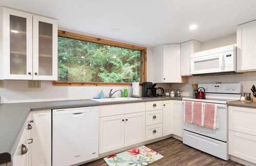 • Kitchen is fully-stocked with appliances, cookware, silverware, basic condiments and K-cup coffee and tea