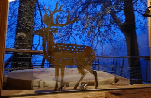 Facing west, the setting sun is inviting in the tree house, panoramic view of the Genevois Franco-Swiss basin and the Jura.