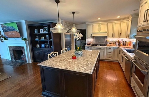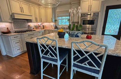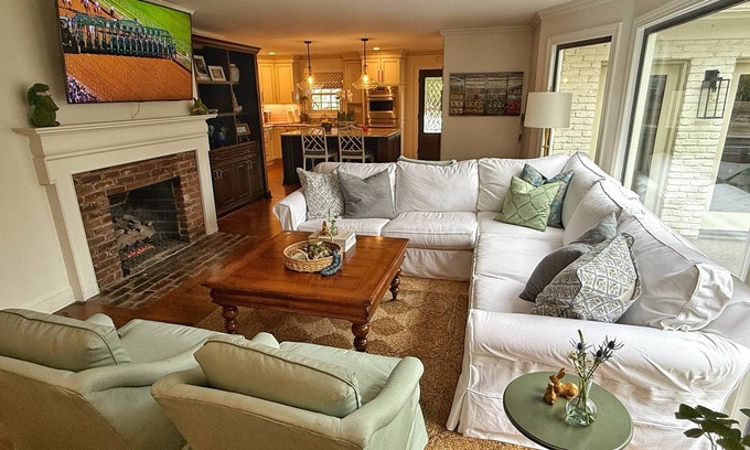 Located just off River Road, discover a completely transformed, French-inspired residence nestled off the coveted Lime Kiln corridor. Showcasing recent design enhancements that effortlessly blend a fresh, sophisticated elegance with comfortable living. Experience the convenience of first floor living in an airy primary suite, featuring a luxurious white Carrera marble bathroom and an expansive walk-in closet complete with built-in laundry. The floor plan is perfect for both relaxation and entertaining. Gather with friends and family in the spacious family room and kitchen. Adjacent to this space, you'll find a sleek entertainment area reminiscent of your favorite cocktail lounge, leading to an outdoor kitchen, an extended patio, and a top-of-the-line Jacuzzi hot tub. Upstairs, two generous bedrooms and a full bath can sleep 6-7. The lower level continues to impress with a wet bar, open theatre with 75” LED TV, ideal for game watching! This exceptional property stands out in its sophistication, design, and privacy, located in one of Louisville's most sought-after and convenient areas. Sleeps 8-10