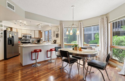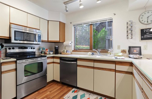 Condo is located on the ground floor of the center building on the north side of the Four Seasons Condos complex, entrance is off the north side of the pool, #26. Private covered parking spot labeled with condo# is on the east side of the parking lot. Door lock code will be sent the day before your stay and will be valid until check out at 11am on your last day. Front door has resident privacy lock accessable from inside only. Condo is equipped with a ring doorbell camera and rear patio camera aimed at back patio door for resident and host safety. These cameras are motion activated.