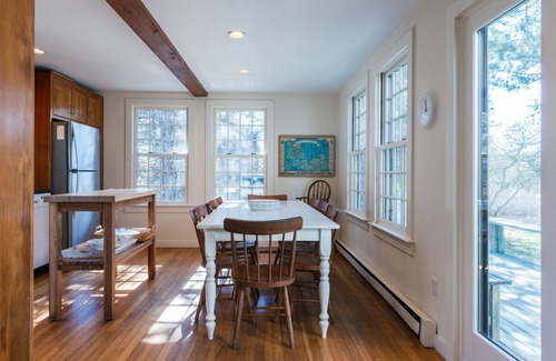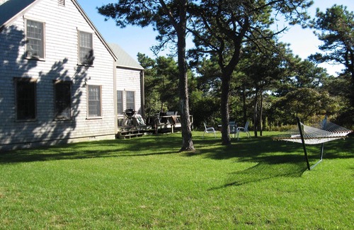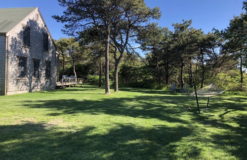 'Ferrindipity' is a quintessential Nantucket cape with an open floor plan. As you enter our home( first floor) you come upon the living room with a brick free standing fireplace, hardwood floors and beamed ceiling flowing into the eating area and kitchen. Off the living room is the master bedroom and 4th bedroom that is furnished as a TV room. There is a newly renovated full bathroom with a glass enclosed tile shower and beach stone floor. Off the kitchen are french doors to a wrap around deck. Upstairs are 2 more bedrooms each one has 2 twin beds and a full bathroom with a bath tub. The house is well equipped for a family vacation. There are 3 TVs each one hooked up to cable with on demand service, DVD, Bose wave stereo system, wireless internet service and cable telephone service. The outdoor shower is fabulous. Relax on the back deck or in the hammock with only the sound of the waves. The path beside the house leads directly to the best beach, located directly between Nobadeer and Fisherman’s.