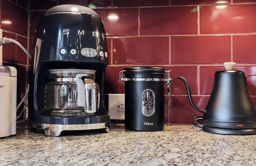 Fresh coffee beans, grinder & SMEG coffee brewer is included with your stay. Some tea is available as well as an electric hot water kettle.