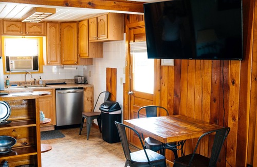 This "Bird's Nest" apartment/bungalow style accommodation is ideal while playing in the Collegiate Peak Mountains, guests can walk to a winery, a brewery, several restaurants and even a handy grocery/hardware store. The perfect apres ski, float, raft, fish, hunt, wine tasting, brewery hopping, shopping pad is nestled in the Colorado mountains in a quaint motor lodge style Lodge. The Bird's Nest is our cozy little bungalow that sleeps as many as five -eight, depending on the configuration of your group. It is perfect for families, groups of friends, ski groups, hunters, etc. It comes with a lovely living area, with a 50 inch flat screen Roku TV, a dining area and a full kitchen. The bungalow offers two bedrooms. One bedroom sleeps up to 5 with a bunk bed with a full size bed and a twin and another bunk bed with two twin size beds. The second bedroom sleeps up to two in a queen bed and it's own air conditioner. Step outside via the backdoor into your own creek side oasis as our property has a running creek that runs through it. The bungalow comes complete with a creek side gas grill and seating area. Adjacent to the garden courtyard, you can enjoy that as well and sit by the fire pit or enjoy your breakfast from the FlaminGo breakfast food truck (delicious breakfast options) outside with our families of birds, deer and butterflies. The bungalow requires a two night stay. We do rent for one night with an additional cleaning fee, so feel free to enquire about that if can only stay one night.