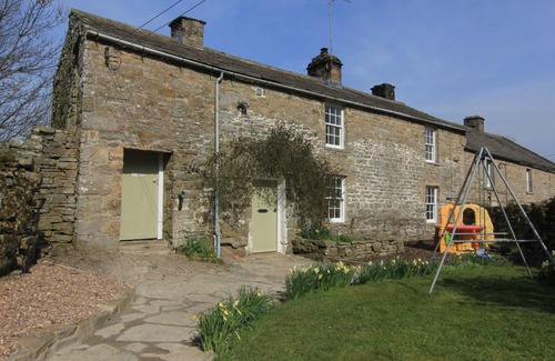 Luxury pet free cottage in hamlet of Spring End, 1.5miles from Gunnerside. This spacious 2 bed cottage has been beautifully restored to retain all the character of a Dales cottage with central heating and modern facilities you want for a comfortable holiday. With 2 large double bedrooms, Bed1 with king size bed and additional single bed and Bed2 with a super king bed which can be made up as a twin, it offers options for couples or families. The beautiful living room with leather sofa has TV, DVD, Freeview, WiFi and iPod docking station - perfect for winter evenings in front of the cosy stove. Whilst the luxury kitchen with flagged floor and farmhouse table is great for a family dinner or cup of tea after a day on the hills. Gorgeous photos of the area taken by the owner are in all the rooms. The beautifully kept garden is lovely for sitting out, and has a swing, and climbing frame. All linen and towels provided. Private parking for 3 cars. This property is not suitable for smokers or pets