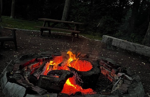 Outside you can enjoy your morning coffee on a covered deck overlooking a private ten-acre wooded lot. There is a fire pit if you would like to relax by having a bonfire in the evenings after a day of watching the US Open.
