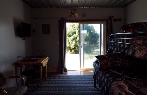 The Bunkhouse is in a beautiful, quiet country setting. Breath that fresh country air. Sleeps 4. Come enjoy this peaceful country view and atmosphere. Sliding glass doors and a small deck is a great spot for morning coffee. This get away is a studio with one bunkbed (1 twin/1 full size) and Love seat/hide-a-bed with bedding, TV, kitchen, utensils, coffee maker, crock pot, two burner hot plate, toaster, microwave, refrigerator, table and 2 chairs, bathroom with shower with towels and wash clothes. This is the perfect get away or hunting lodge. Families welcome, Hunters welcome. Starlink internet with request. If you have any needs while staying with us, just text or call. Doug and I are the owners and managers, We respond Immediately. We want you to return to stay again and again. Thank you for taking a look and hope you book.