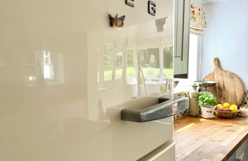 Comprises of a spacious sitting room with an open fire in the inglenook fireplace, exposed oak beams, door to terrace and Smart TV. Second sitting room has exposed oak beams, sofa converts to a double bed if required. Dining room with wood burner in the inglenook fireplace, exposed oak beams and original brick floor, open plan to the contemporary country style kitchen with modern appliances, electric oven, hob and microwave, Smeg fridge/freezer. The kitchen is open plan to the light and airy garden room with its large kitchen table. 3 big opening windows to the rear of the garden room give glorious views of the gardens and stunning sunsets, double French doors to each side leading out onto the wrap around terrace.