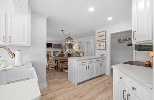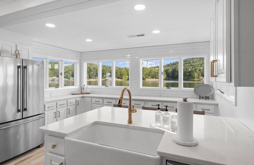 Spacious Accommodations: The home comfortably sleeps 8 guests with 4 well-appointed bedrooms and 3.5 bathrooms, ensuring everyone has plenty of space to relax. Each room has a beautiful view of the lake and is designed with comfort in mind, featuring plush bedding and thoughtful touches to make your stay as relaxing as possible. The primary main-level suite offers its own bath.