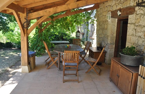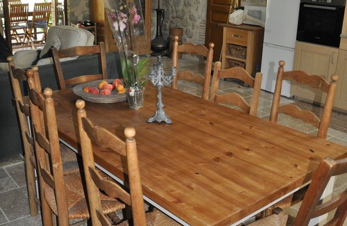 Beautifully restored and wonderfully situated farmhouse consisting of 8 x 6 metre barn with open plan kitchen, dining area and living room connected to house with four bedrooms (three doubles and one twin), one ensuite and two further bathrooms all with showers. The barn opens on to a large wood-framed covered terrace with 10 x 5 metre swimming pool close-by. The pool is opened from mid-June to early September, otherwise by prior arrangement with the owner. Good access to very private grounds consisting of tree-lined gardens and paddock. The pool has a removable fence surround that we leave in place through the summer whilst the pool is in use.