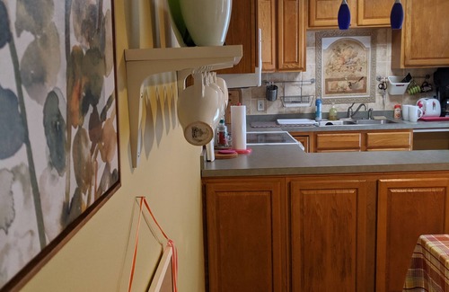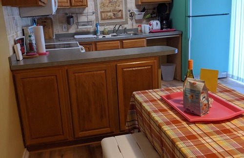 Perfect place to call home away from home. Very cozy set up, that won't have that hotel feel. Everything that you may need on your vacation is provided. Two bedrooms are upstairs, so you can get well rested while the rest of your family is spending time downstairs watching TV, playing board games or cooking meals with fresh ingredients (Fresh Produce store with great prices is only a couple