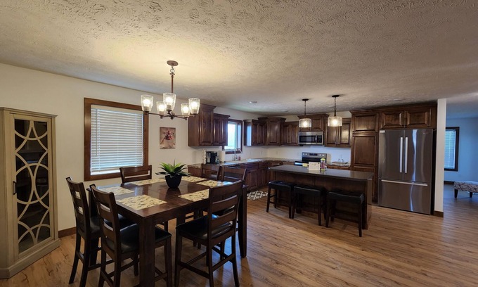 Located within just a mile from local attractions such as the softball complex, Walmart, and a selection of delightful restaurants, you and your guests will have plenty of options to explore nearby. The children's museum, Menards, Starbucks, and scenic bike and walking trails add to the appeal of this charming neighborhood. Perfect for a TEAM of people! is not just a place to stay but a sanctuary where you can create lasting memories with your closest friends and family during your special day.