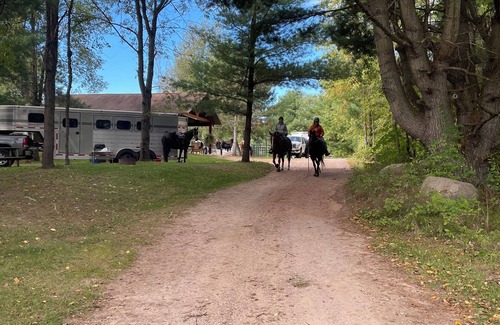 The Ash is off to itself & little bit more private. There is ample parking for horse trailers, trailers for ATV's & UTV's, boats, and multiple vehicles. If you choose to bring your horse to the Ranch it has horse pens right out your front door for your horse to stay in. The visiting horse barn is a short walk to the top of the Ranch should you prefer a stall. All horses do need negative coggins. We do not allow stallions on the Ranch. Horse trail passes are not required in the National Forest in Oconto County.
