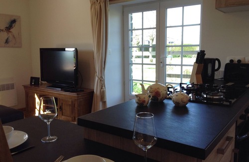 The property has been newly renovated to a high standard. Oak furniture, leather sofa and footstool and Laura Ashley soft furnishings throughout. The bedroom is vaulted and beamed and the king size bed has a very comfortable mattress. A hair drier is provided. The lounge area has a comfortable seating arrangement and satellite TV is available as well as free wireless broadband and an iPod dock. There is also French satellite TV available. The kitchen is fully equipped for those who like to cook whilst away!