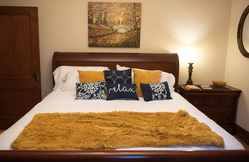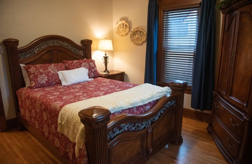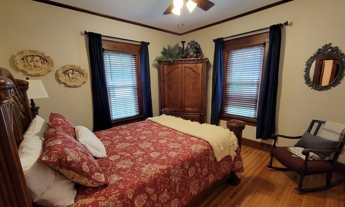 This cozy, cheery home built in 1916 has been extensively renovated. Featuring a large front porch, original woodwork and wood floors throughout, coffee bar, and comfy beds..you'll feel right at home!