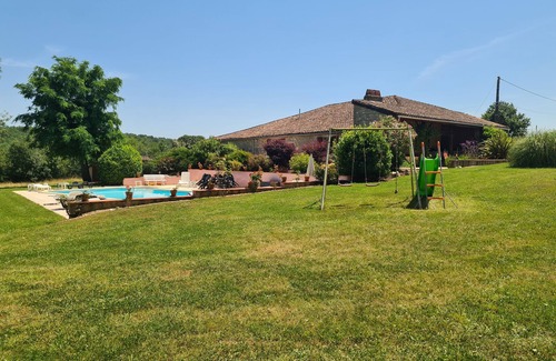 Located in the sleepy rural department of Lot et Garonne, La Nique stands in a hectare of parkland with spectacular views all around . The nearest house is about 250 meters away, with just 3 others along the track. 4 double beds in the four bedrooms, plus 2 x 2 bunks, with an optional sheet service available. The house is particularly suitable for families & children. There is a fully equipped kitchen and 2 bathrooms (and an additional WC). Outside, there is a large private heated pool and an all weather tennis court, as well as BBQ, table tennis, bar football, croquet, boules, swings etc. Plus 3 patios for al fresco dining. This is a truly magnificent holiday home. For more information search the words Bahram and La Nique.