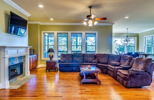 Spectacular location on the 10th hole at Oxmoor Valley, just 175 yards from the clubhouse. Our home was built specifically for groups. Amenities include: 4 Master Suits, 8 Queen Beds, walk-in showers, 75" TV, Pool Table, 3 Leather Sofas and a fully equipped kitchen. We tried to think of everything a group would want on a golf trip with friends or family, and included it in our houses. The finishes and amenities are all 1st Class, and the floor-plan is a Wide Open Concept. There's plenty of room for everyone to spread out and relax. We have 3 houses on same street, to accommodate groups from 4 to 30. You can't stay closer to the clubhouse.The pricing for Palmer is based on 8 guests, but we allow up to 12. Each additional guest is $125 plus tax, per night. (Note: the fireplace is inoperable)