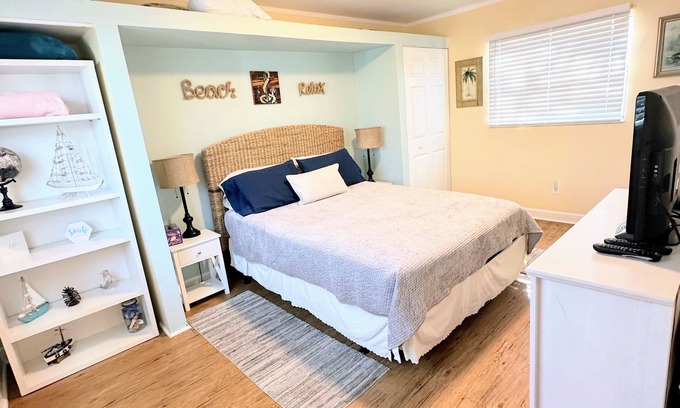 Cozy Guesthouse with your own private bedroom, living room, bathroom, large eat in kitchen and a secluded porch. Located right on the beautiful Indian River Lagoon and is on the premise of Mel Fishers Treasure Museum and includes 2 free passes with the stay! The space is newly renovated with beach, treasure, and pirate themed furnishings. With a beautiful sunrise and glass calm waters the riverfront is the perfect place to take a morning stroll. Within walking distance you can shop, enjoy waterfront dining, or listen to an array of local musicians during nightlife.